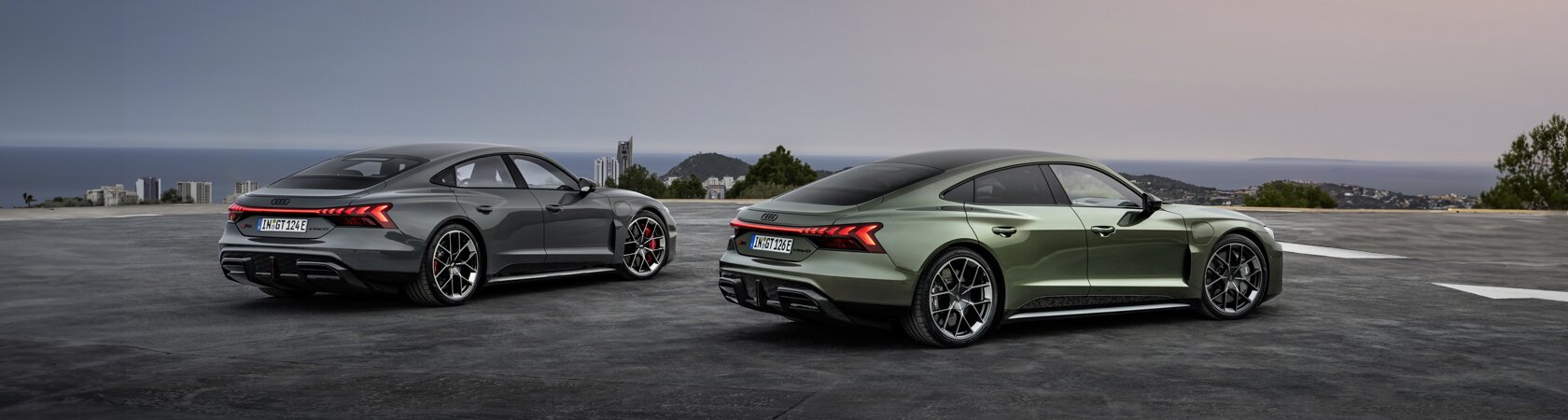 Vår fullelektriske sportsbil og toppmodell kommer nå med signifikante forbedringer både i rekkevidde, ytelser og teknologi. Den nye Audi RS e-tron GT er en elbil med innovativ og aerodynamisk design. Den har en romslig kupé og eksklusivt utstyr som sørger for høy komfort også på lange kjøreturer. Les mer om RS e-tron GT.